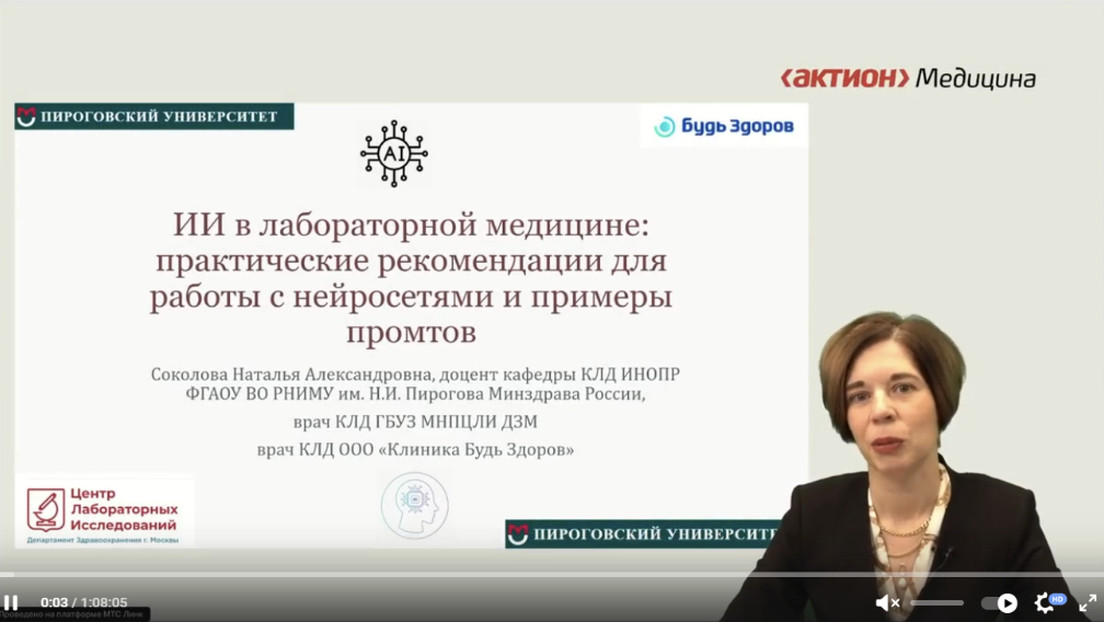 доцент кафедры клинической лабораторной диагностики ИНОПР ФГАОУ ВО РНИМУ им. Н.И. Пирогова, врач КЛД ГБУЗ «Московский научно-практический центр лабораторных исследований ДЗМ»
